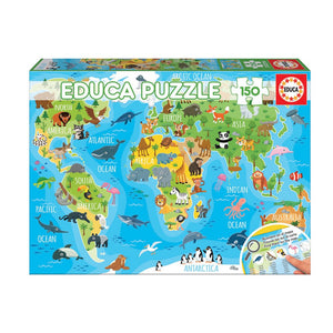 Puzzle Mapa Mundo animal - 150 peças (EDU18115)